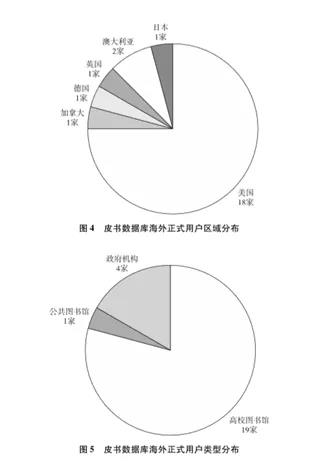 皮书数据库海外正式用户主要分布在美国,占海外正式用户总数的75.0%。这主要是由于美国高度关注中国发展问题,不仅美国国会图书馆、美国外交关系协会、联邦图书馆信息网络中心等政府机构购买了皮书数据库,美国当代中国研究的主要机构如哈佛大学、密歇根大学、加利福尼亚大学等都是皮书数据库的正式用户。